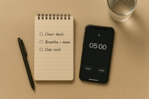 Write a 3-item list for the morning. Place it where you’ll see it first. Progress loves clarity.